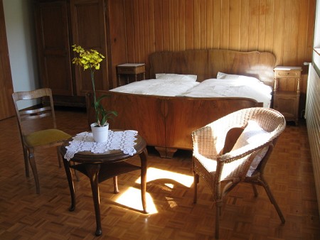 La maison est située dans un petit village rural entre Payerne-Moudon-Romont, à proximité du chemin de St-Jacques de Compostelle. La chambre d'hôte avec cheminée de salon peut accueillir jusqu'à 4 personnes. Repas le soir et préparation de pique-nique sur demande. Terrasse et jardin avec vue sur Neuchâtel et son lac. Offre possible de babysitting le soir. Grand séjour commun. Trajet en voiture Romont gare-Cerniaz possible sur demande et contre supplément. Wifi gratuit.