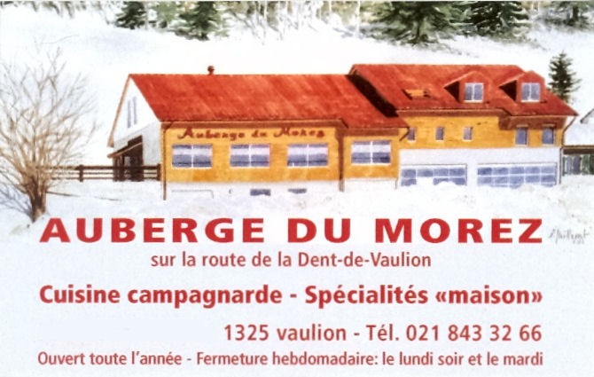 L'Auberge du Morez, situé sur la route menant à la Dent-de-Vaulion, offre un accueil chaleureux et une cuisine généreuse dans le cadre magnifique des pâturages du Jura. Par temps clair, il est possible d'apercevoir les Alpes et même la plaine. Les enfants bénéficient d’un espace de jeux.
