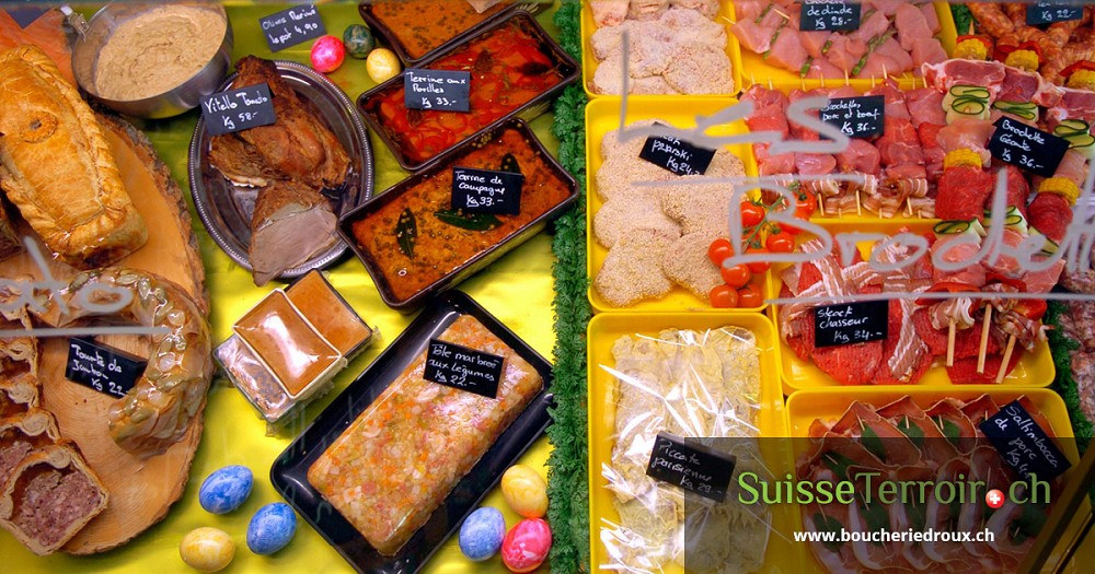 La boucherie-charcuterie Droux & Fils est située dans le magnifique village médiéval d'Estavayer-le-Lac dans le canton de Fribourg, elle possède en plus de ses produits carnés et du terroir, un rayon poissonnerie et de nombreux articles d'épicerie fine.