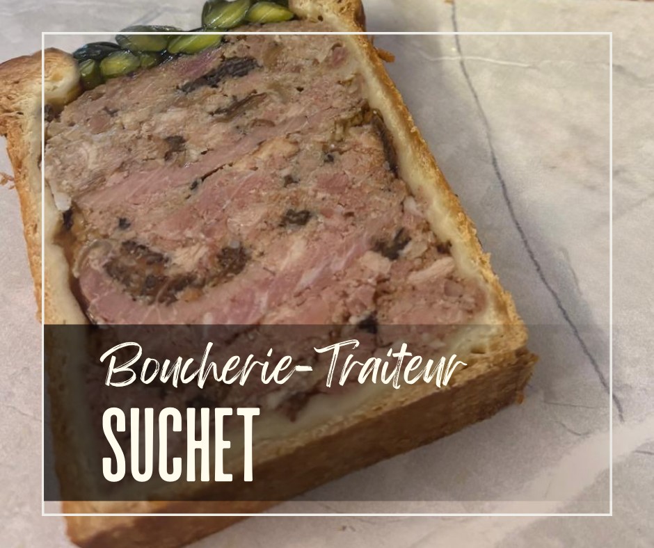La Boucherie-Traiteur Suchet est particulièrement reconnue pour ses pâtés artisanaux, devenus une véritable signature de la maison. David Suchet s’est passionné pour leur confection et développe régulièrement de nouvelles recettes inspirées du savoir-faire traditionnel de la charcuterie.