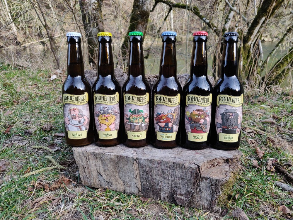 Le nom et l'identité visuelle de la Brasserie Tonnebière sont directement inspirés d'un univers de jeu vidéo où des nains guerriers et des orcs s'affrontent dans des batailles épiques, rappelant l'ambiance médiévale fantastique qui se retrouve dans notre environnement de production à St-Ursanne.