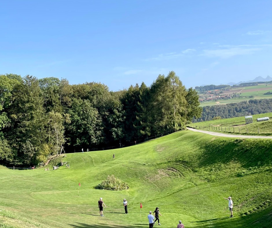 Le mini-golf sur herbe est une activité rare et 100 % naturelle : 36 trous (2 parcours de 18) installés directement dans l’herbe, sans béton ni plastique. Jouez sous les arbres, dans une prairie tondue sans produits chimiques. Unique en Suisse, ce mini-golf écologique vous garantit des moments de rire et de détente en plein air.