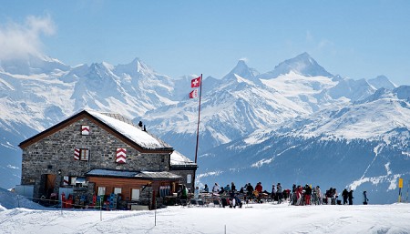 Pierre-Olivier Bagnoud (guide de haute montagne) et Franck Reynaud (cuisinier), vous souhaitent la bienvenue dans leur cabane de montagne, située à 2'208 mètres d'altitude, sur le domaine skiable de Crans-Montana.