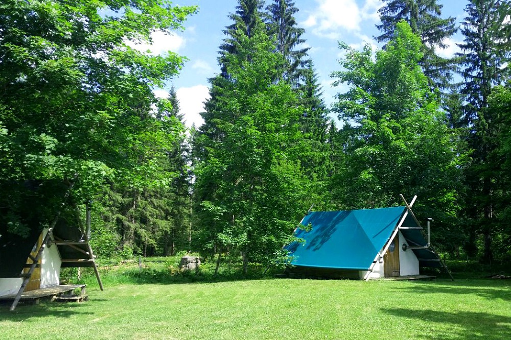 Le camping du Creux-des-biches est un petit camping situé dans un lieu exceptionnel pour la famille et les amoureux de la nature. (VTT, escalades, équitation, canoë, randonnée etc…) Perché à 1000m d’altitude aux pieds des sapins séculaires, dépourvu d’électricité, le camping offre une ambiance calme et conviviale dans un milieu rural et naturel.