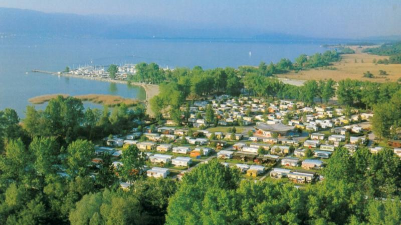Le camping qui a vu le jour en 1970 recense 415 parcelles et 25 places réservées aux camping-cars qui ont la possibilité d'utiliser la borne euro-relais. Le camping compte aussi 60 places réservées pour le passage. Si la provenance des indigènes se partagent équitablement entre Romands et Suisse-allemands, les vacanciers d'Outre sarine sont par contre plus nombreux à venir au port et au camping.