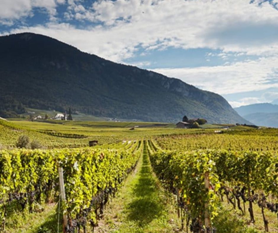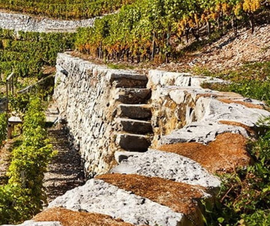 C'est un vignoble des plus spectaculaires. Les vignes se dessinent en terrasses pour rattraper les fortes pentes, jusqu'à 500m d'altitude, sur des sols de graviers et d'éboulis calcaires issus de moraines.
