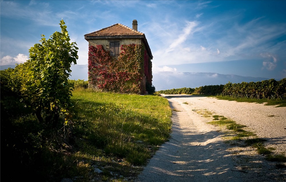 Loin de la ville, les paysages bruts. Dans le ciel se découpent les collines et s'alignent les ceps disciplinés. Les vignes font partie de la vie des habitants de Dardagny depuis des siècles et l'on y vit au rythme du terroir.