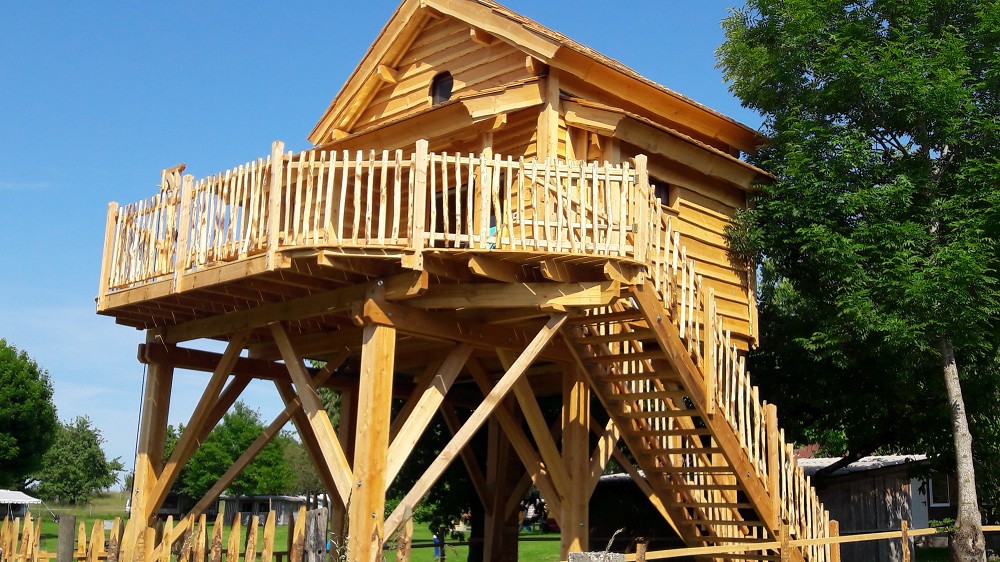 - Une grande cabane perchée familiale, toute équipée, idéale pour 4 à 5 personnes (selon l’âge des enfants)