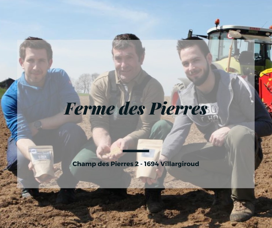 La Ferme des Pierres est une exploitation familiale nichée au pied du Gibloux. En 2017, nous avons entamé la culture du quinoa à petite échelle, une initiative que nous avons poursuivie en 2018 avec une surface plus importante et une approche de culture entièrement sans pesticide. Cette démarche s'est avérée être un succès et nous comptons bien la pérenniser. En plus de cela, nous proposons à nos clients une sélection de viandes de bœuf, de veau et de porc, élevées en plein air avec un souci particulier du bien-être animal.