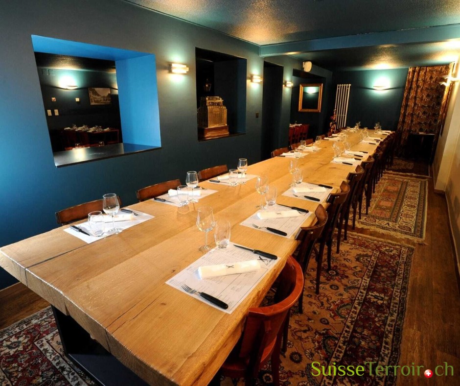 - Salle à l’étage : 64 places dans un cadre feutré, idéal pour repas en famille ou entre collègues