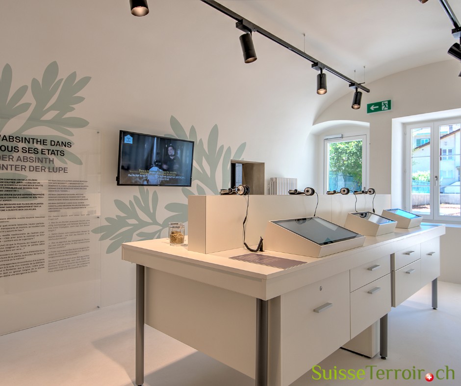 - Boutique spécialisée : absinthes suisses, verres, cuillères, fontaines, souvenirs