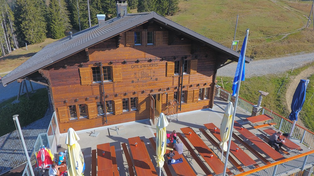 Situé à 1485 mètres d’altitude, Le Gîte d’Allières propose à sa clientèle de la restauration locale composée de produits du terroir. Les amateurs de fromage auront le plaisir de déguster une bonne fondue ou un délicieuse croûte au fromage. Le Gîte dispose de 70 places à l’intérieur et d’une grande terrasse extérieure d’environ 100 places faisant face au Moléson et aux préalpes gruériennes. M. Tinguely et son équipe organisent également plusieurs événements durant l’année comme par exemple, la Bénichon ou encore le Nouvel an.