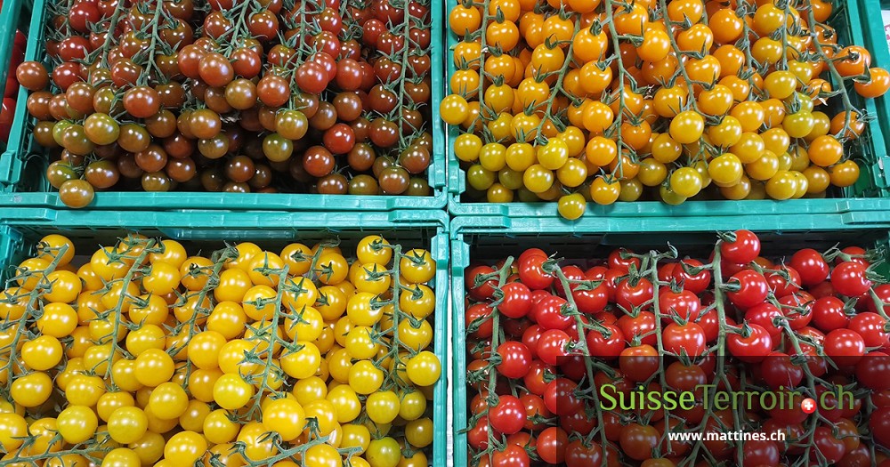 Nous avons pas moins de 20 variétés de tomates différentes, les cherry tomates de toutes les couleurs en passant par la coeur de boeuf et autre rose de Berne sans oublier la traditionnelle tomate grappe!