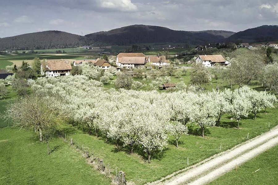 Balade balisée au départ du château de Pleujouse qui rejoint Asuel puis la route des Rangiers, jusqu'au lieu-dit Le Chételat. Cet endroit offre une place de pique-nique remarquable avec, en sus, une vue intéressante sur l'Ajoie. La randonnée se poursuit jusqu'à Derrière-Mont-Terri avant de rejoindre Cornol, village qui abrite notamment l'une des dernières saboteries artisanales de Suisse, Fregiécourt puis Pleujouse, le point de départ. Le parcours traverse de magnifiques vergers de damassiniers mais aussi de pruniers, cerisiers et autres pommiers. Quand on vous disait que l'Ajoie est vraiment le verger du Jura.