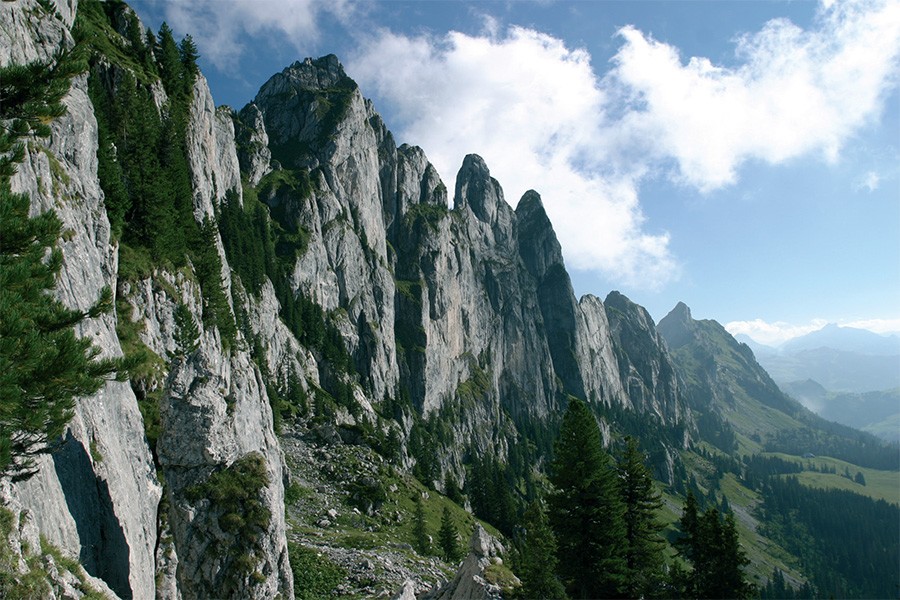 La vallée de la Jogne doit son nom à la rivière qui la sillonne dans un décor minéral: les Dents-Vertes, les Gastlosen, la Hochmat, etc. Un véritable paradis pour le promeneur et le randonneur. À bon niveau, l’eau unit les villages, les relie, règne des grenouilles, mais surtout de cette truite qui fit, jusque vers 1960, la renommée des tables de Charmey et de Jaun.