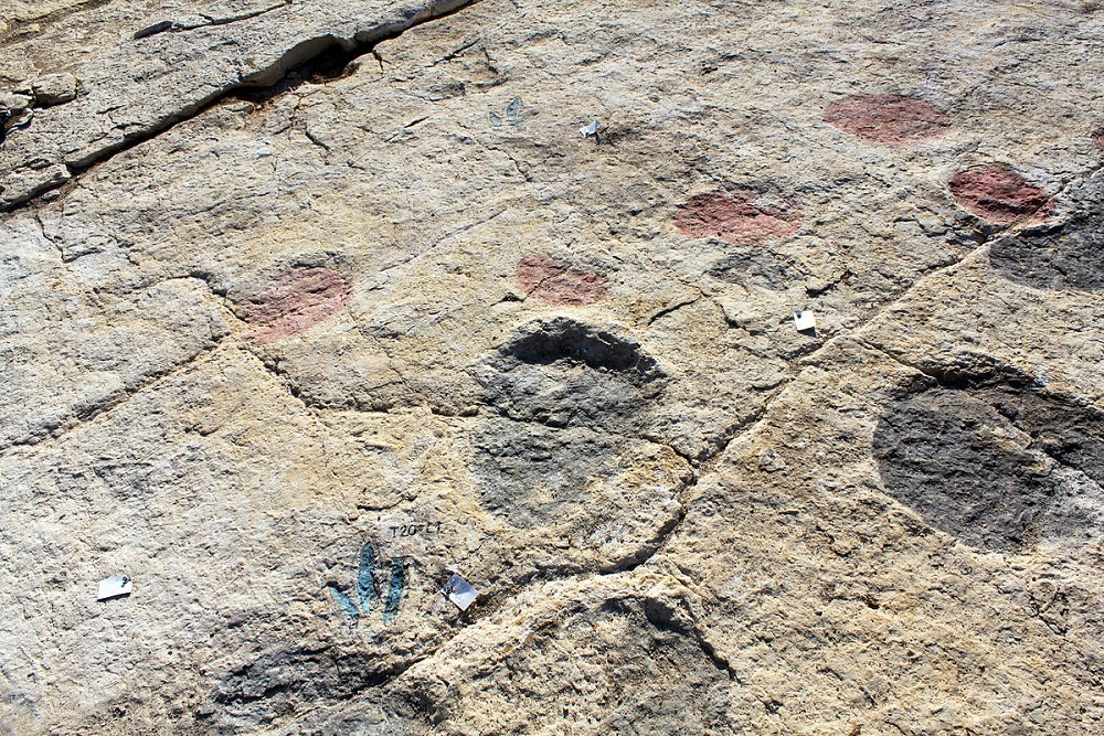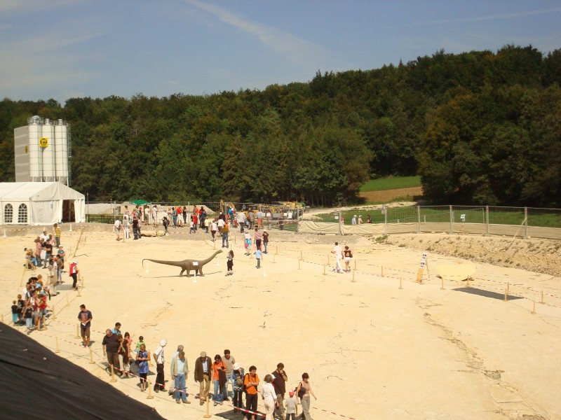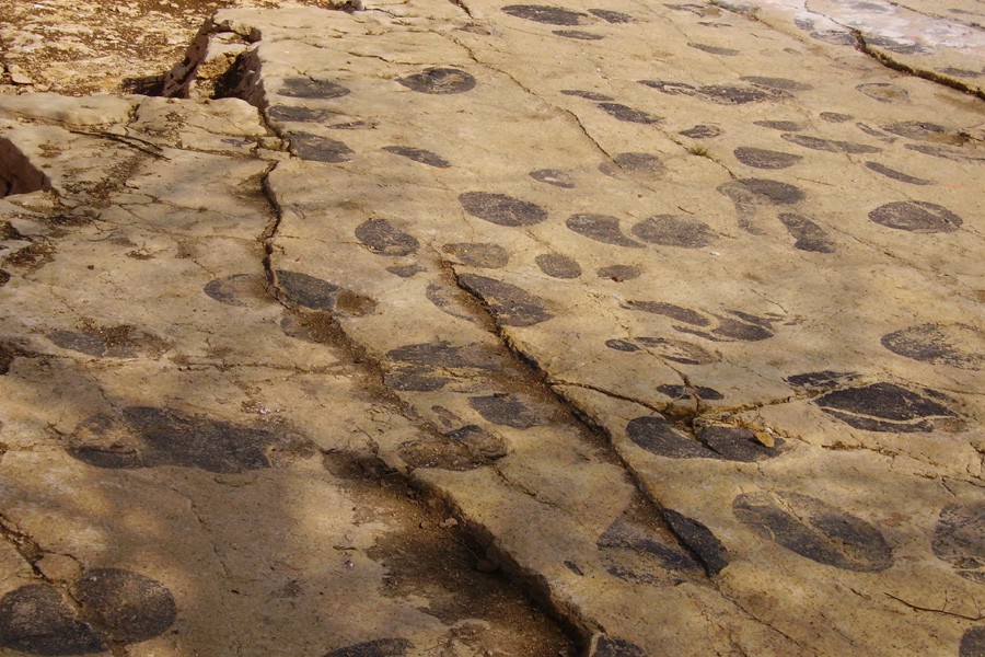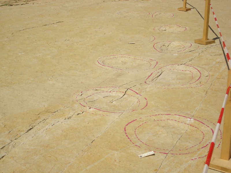 Le sentier se termine par la visite d’un site à traces comportant des empreintes de sauropodes (dinosaures herbivores) laissées il y a 152 millions d’années. Certaines empreintes mesurent plus d’un mètre de diamètre. La dalle calcaire est visible depuis une barrière, son accès direct étant interdit pour assurer sa conservation.