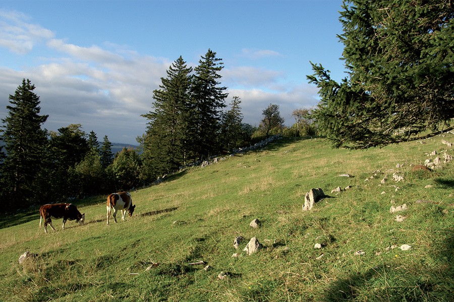 Curiosités : pont des Anabaptistes, Creux de Glace, pâturages boisés, Chasseral.