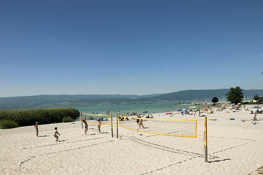 Avec sa magnifique étendue de sable fin et sa partie gazonnée, la plage de Portalban donne à tous ceux qui y posent le pied l’impression de se retrouver en vacances. Ici, estivants et habitants de la région se retrouvent pour profiter de la quiétude du bord du lac, pour s’adonner aux activités estivales comme le beach-volley ou la pétanque, ou pour suivre les chemins pédestres s’enfonçant dans les marais.