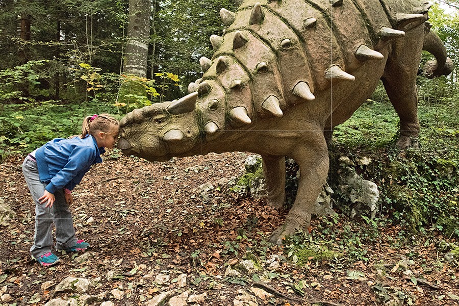 Ultime région du Jura suisse avant la frontière française, l’Ajoie est bien connue pour sa Saint-Martin… mais offre également une multitude de possibilités de découvertes à ceux qui s’y aventurent. Ses vertes collines ont autrefois été fréquentées par des dinosaures, comme en témoignent les nombreuses empreintes retrouvées à Porrentruy, détaillées au Jurassica Museum ou tout au long du sentier didactique de Courtedoux. Le Préhisto-Parc de Réclère prolonge l’expérience au cœur du monde reconstitué de ces animaux gigantesques. Visite à compléter en s’engageant dans le mystérieux univers souterrain des Grottes de Réclère, sous le parc.