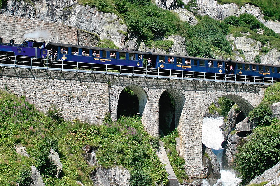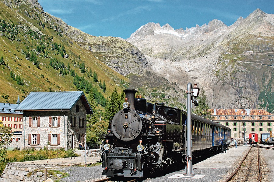 - voyage à bord du train vapeur sur la ligne de la Furka