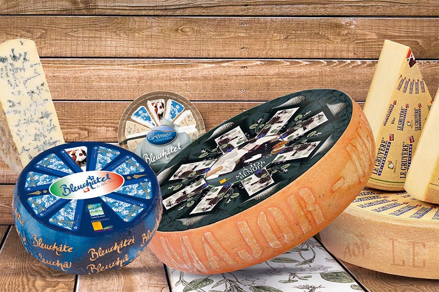 Grâce au savoir-faire des fromagers et à la qualité des herbages, le Gruyère AOP conçu en terre neuchâteloise a largement conquis ses lettres de noblesse. Il est rejoint au panthéon des produits du cru par d'autres spécialités devenues elles aussi très populaires au fi l du temps. Parmi elles, le Bleuchâtel, avec sa robe bordée de bleu, propose une pâte mi-dure crémeuse au lait de vache et séduit les palais tout comme sa proche parente, la crème de Bleuchâtel. Le Britchon, dont la typicité est liée à son affi nage à l'oeil-de-Perdrix, porte un nom qui, en patois régional, signifi e «neuchâtelois». Le Major Benoît à l'aspect soyeux et au goût très frais, est lui aussi un produit phare, disponible à la coupe et en fromage à raclette. Enfi n, le plateau de fromages locaux serait incomplet sans la présence du Sybérien, fromage onctueux et aromatique à pâte mi-dure percée de petits trous. Son nom est un clin d'oeil à vallée de la Brévine d'où il provient. C'est dans les caves d'affi nage creusées au coeur de «la Sibérie de la Suisse» qu'il se pare de ce goût si particulier qui fait son charme et qui, lorsqu'il est mélangé au gruyère, apporte une saveur singulière à la fondue.