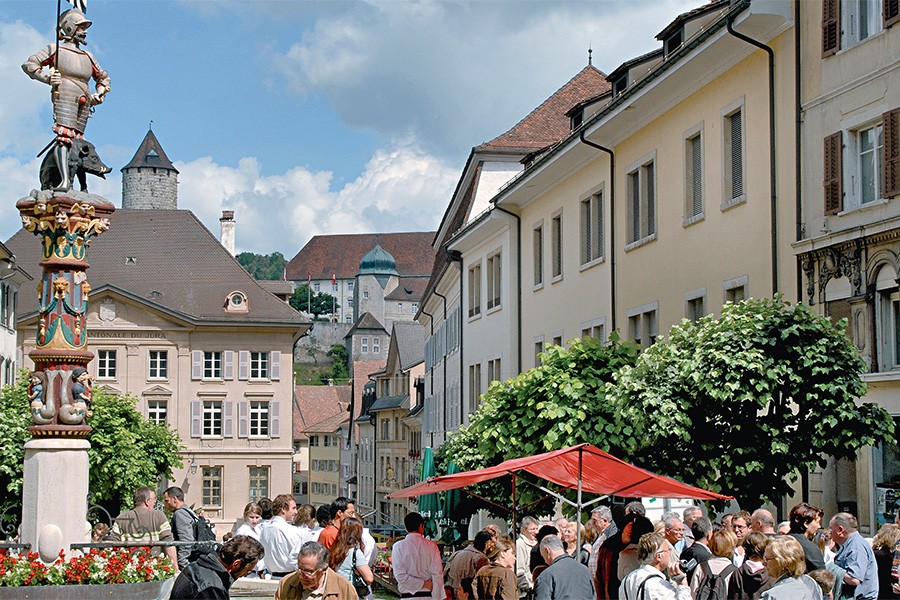 Mais chacun est libre de partir d'où il veut, dans le sens qui lui convient et de fragmenter à sa guise une promenade d'un peu plus de trois heures. Après avoir marché d'une des quatre collines à une autre, longé des étangs et des orées de forêt, admiré de loin la recomposition continuelle des clochers, tours, toits et bâtiments principaux de la cité, retour en vieille ville, si possible sur une des nombreuses terrasses pour savourer quelques moments « à la bruntrutaine » !