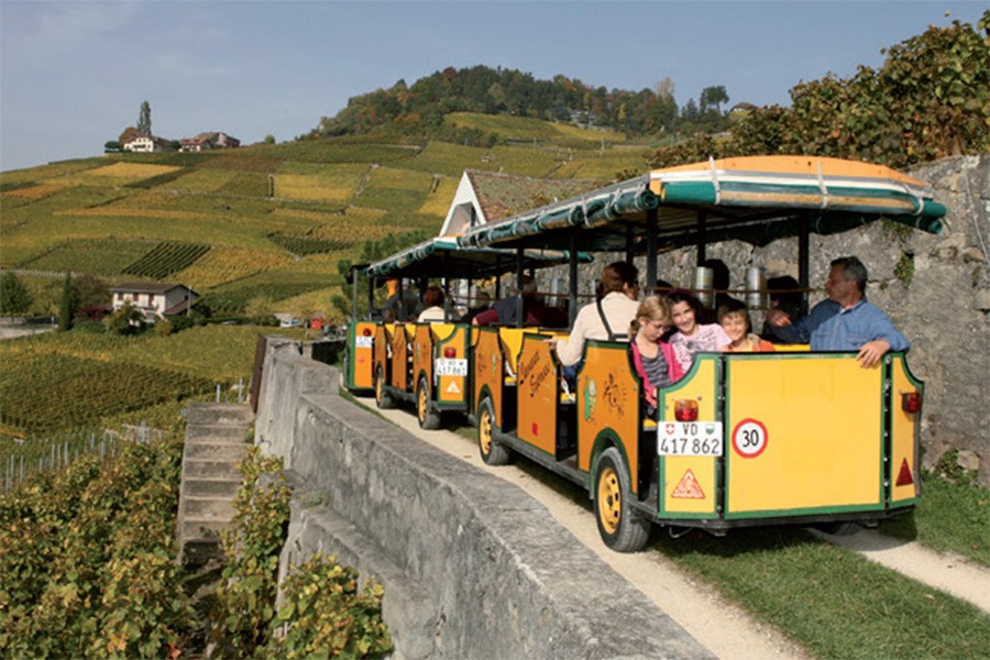Une excellente manière de visiter le vignoble est de s’installer dans l’un des wagons de ce pittoresque petit train touristique. Au départ n’oubliez pas de demander une bouteille de Chasselas. La déguster à petites gorgées entre amis, tout en admirant les terrasses qui défilent au ralenti restera l’une des plus agréables expériences de votre séjour !