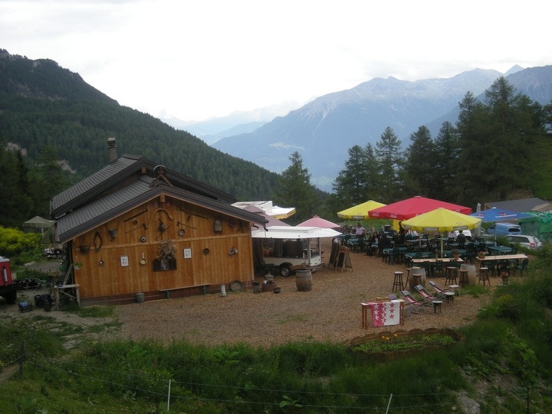 À l’arrivée, la Buvette Cave du Sex vous accueille dans un cadre rustique et chaleureux, idéal pour une pause bien méritée au cœur des pâturages de montagne. Le lieu offre une vue panoramique exceptionnelle sur les Alpes valaisannes, dont les célèbres cinq sommets de plus de 4 000 mètres.